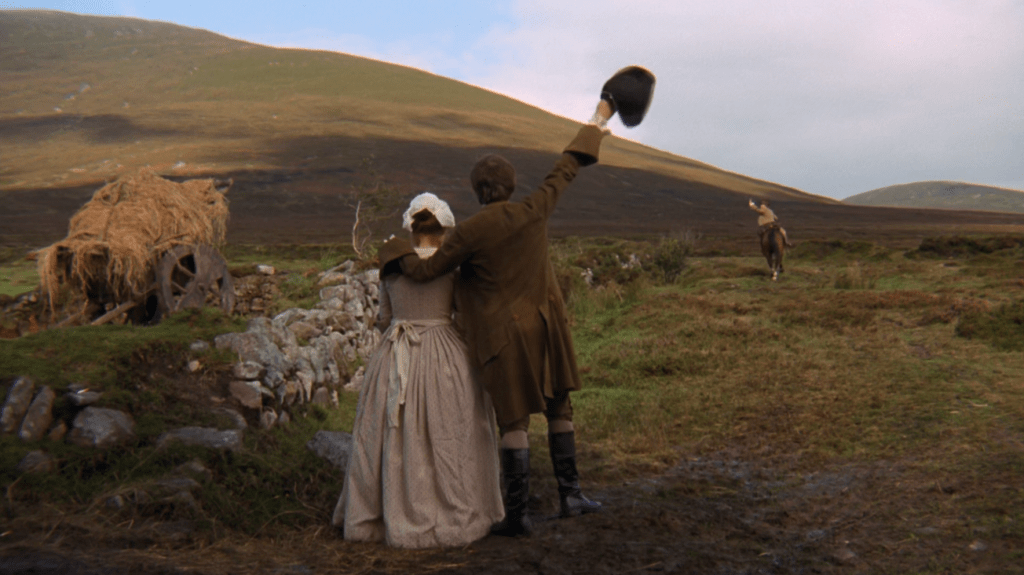 Barry kisses his mother’s hand to reassure her. “I’ll be alright.” The decision has been made, which is why he’s talking as if it has been. The cousin sees Barry off, among gorgeous Irish hillsides, his conspiracy completed: